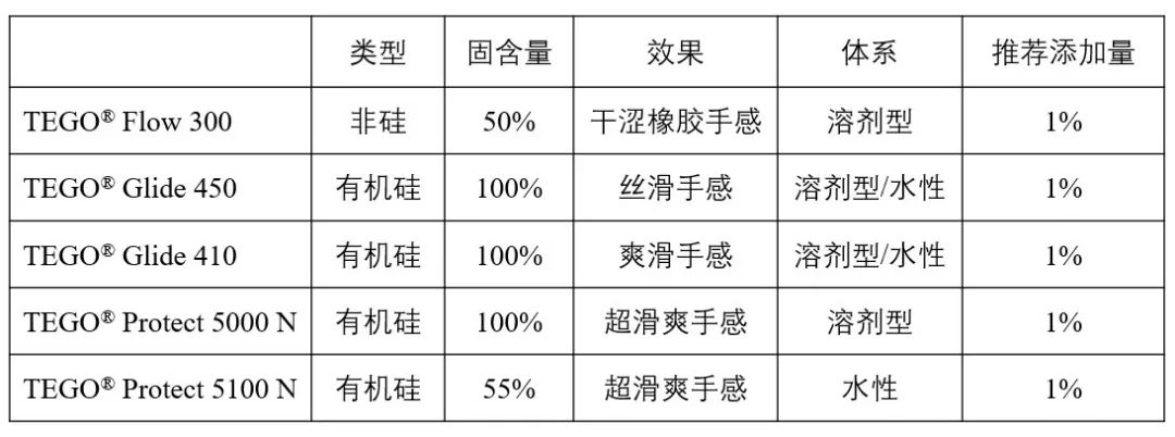 值得注意的是,在评估手感助剂时,需要在相应体系中,着重考量手感助剂的相容性和重涂性。